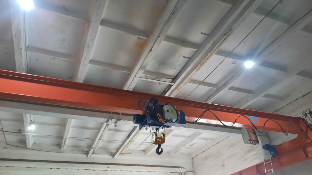 - Производство и монтаж двухбалочного мостового крана грузоподъемностью 16 тонн, пролет 16,5 метров тельферного типа