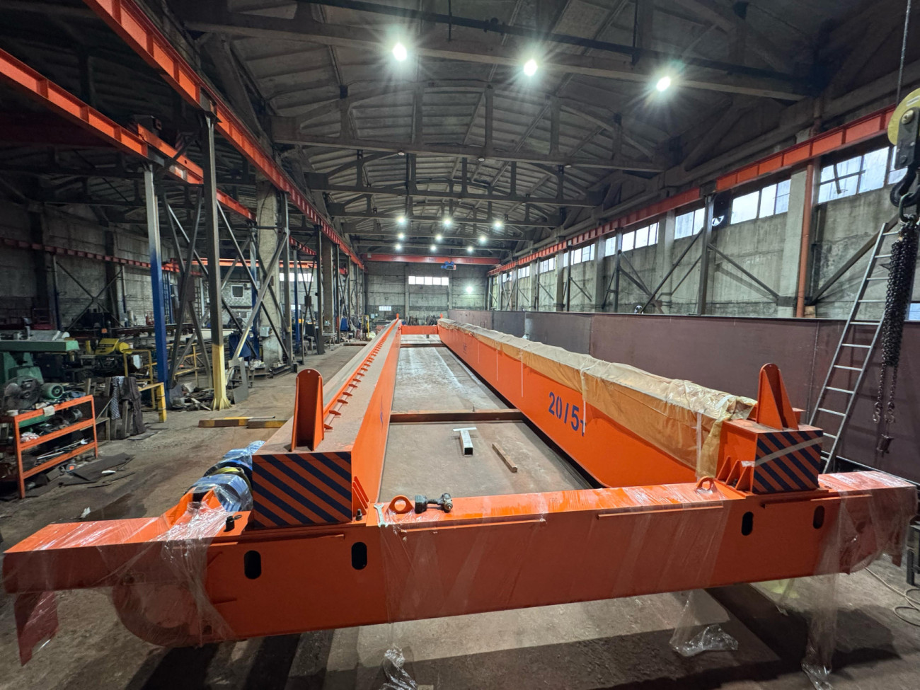 - Производство и монтаж двухбалочного мостового крана грузоподъемностью 32 тонны пролет 22,5 метров