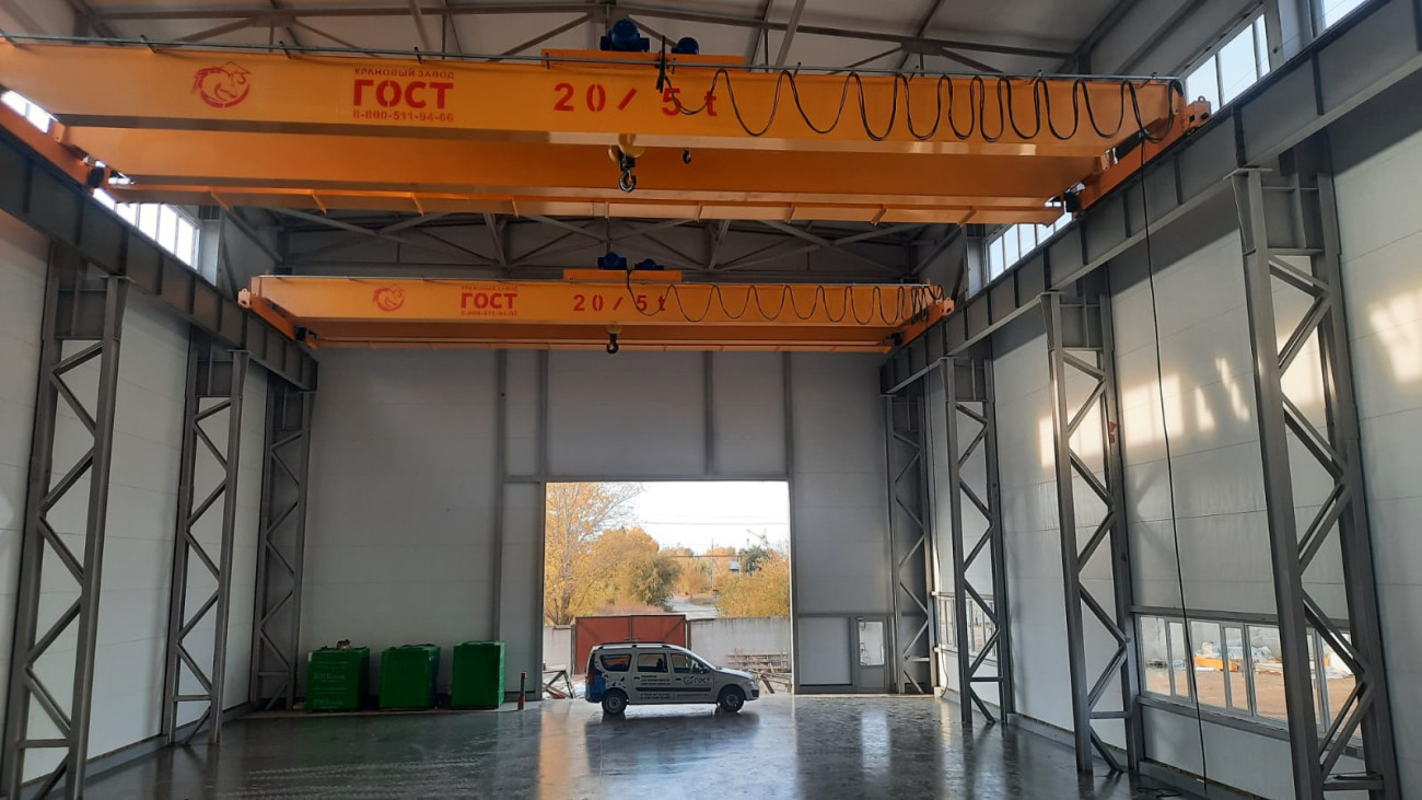 - Производство и монтаж двухбалочного мостового крана грузоподъемностью 20/5 тонн пролет 22,5 метров